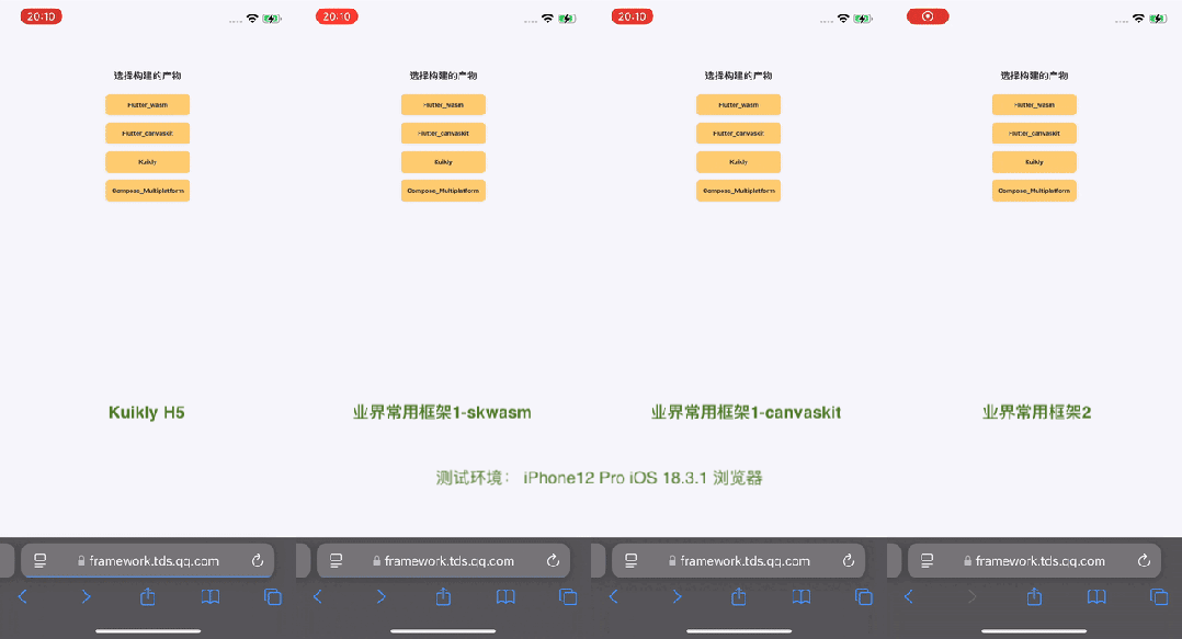 在iOS,Android和PC浏览器环境进行性能测试(运行Hello World Demo),Kuikly在三个浏览器环境下加载速度都是最快的。