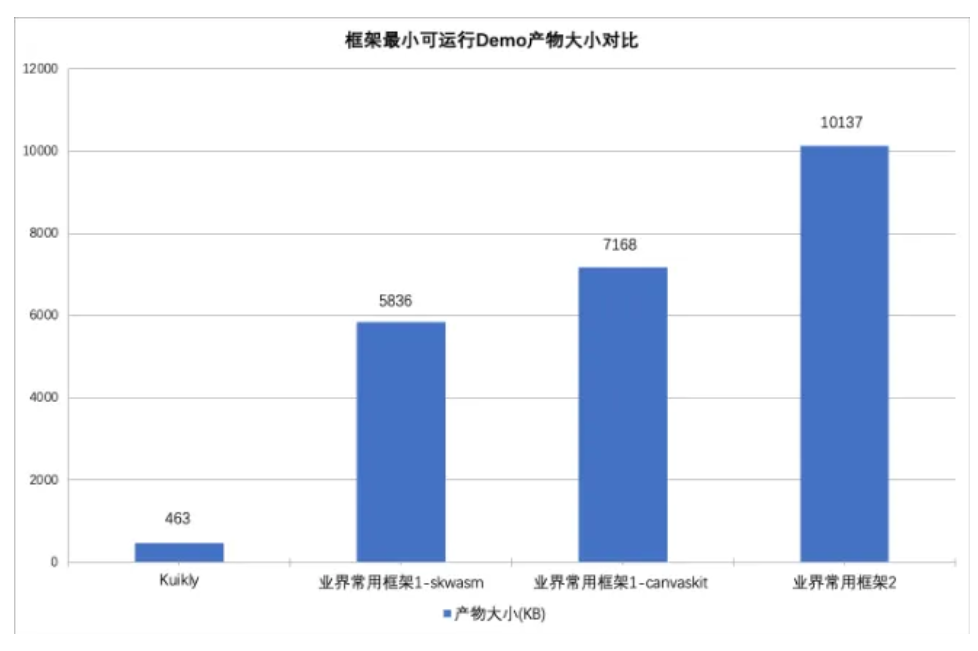 - Kuikly Web使用DOM渲染方案,不依赖第三方产物,产物远小于其他框架,只有463KB。