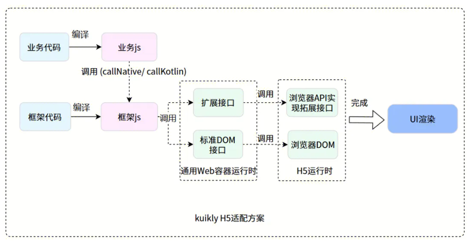 浏览器提供了标准的DOM,Window,Document。Kuikly适配H5时只需实现动画,滚动列表,文本测量等少部分 Web容器运行时拓展接口。