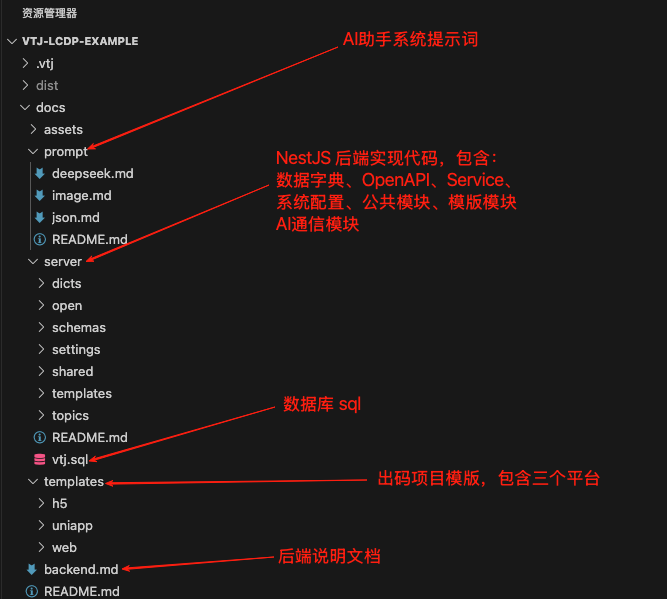 项目结构与标准工程基本一致,以下是 VTJ 特有的重要目录说明: