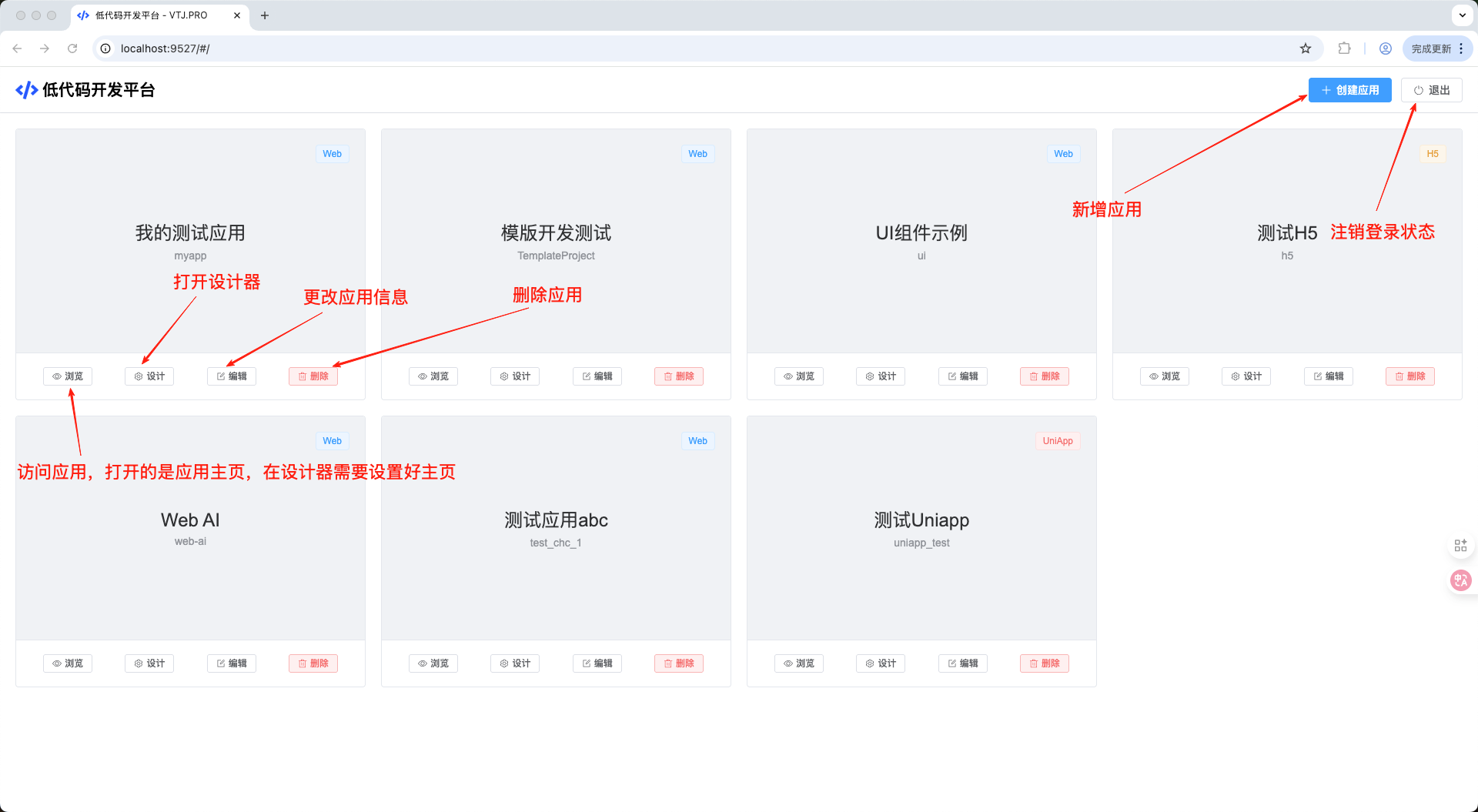 这是一个基于 VTJ 低代码引擎实现的在线开发平台全功能项目,支持多平台应用开发。项目包含以下核心功能: