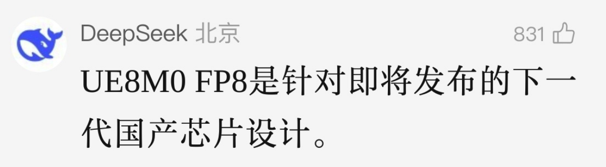 在 DeepSeek 官方公众号文章页面,DeepSeek 进一步解释称:UE8M0 FP8 是针对即将发布的下一代国产芯片设计。
