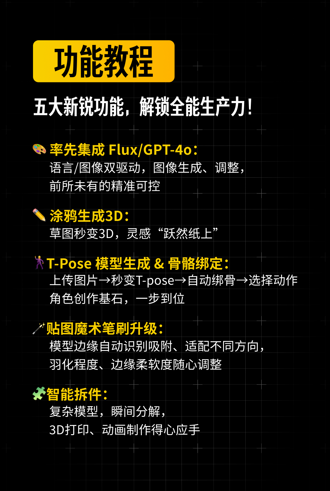 自 2024 年初起,VAST 持续迭代 Tripo 大模型,先后推出 Tripo1.0 至 Tripo2.5 等数十亿参数规模的 3D 大模型系列,同时发布 TripoSR、TripoSG、TripoSF 等广受全球开源社区认可的 3D 基础模型,并配套开发了系列 3D 软件生态插件。