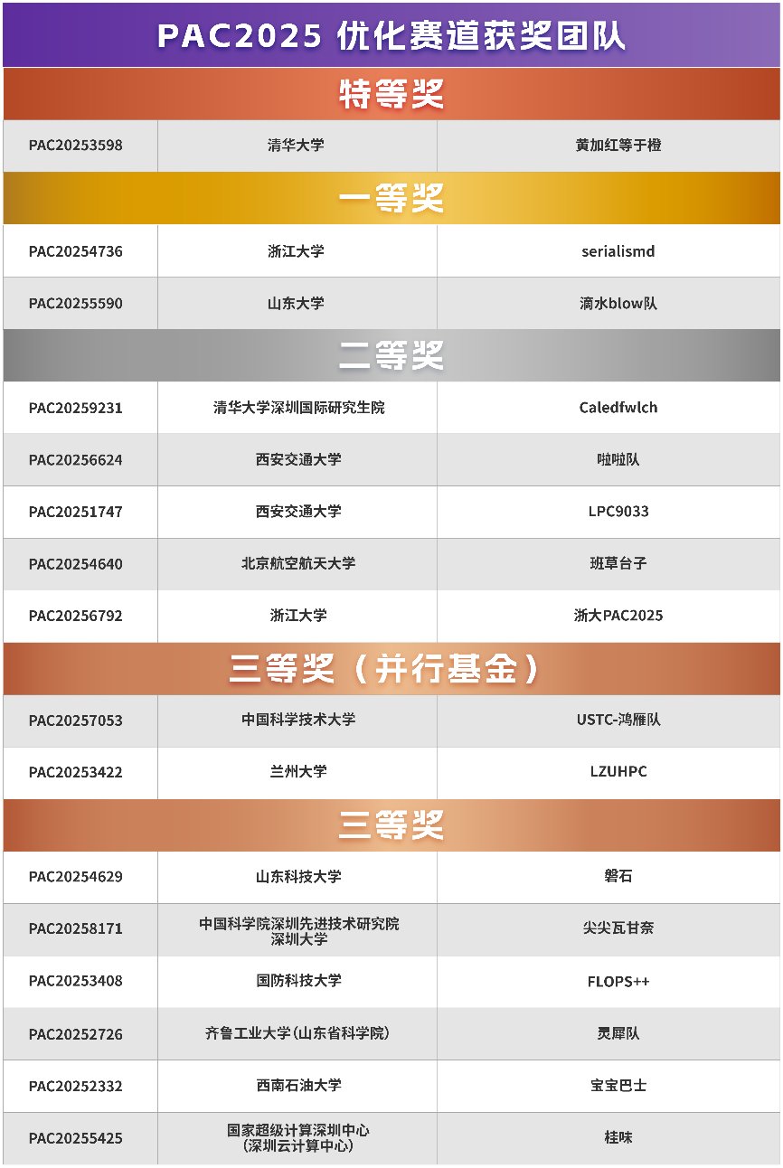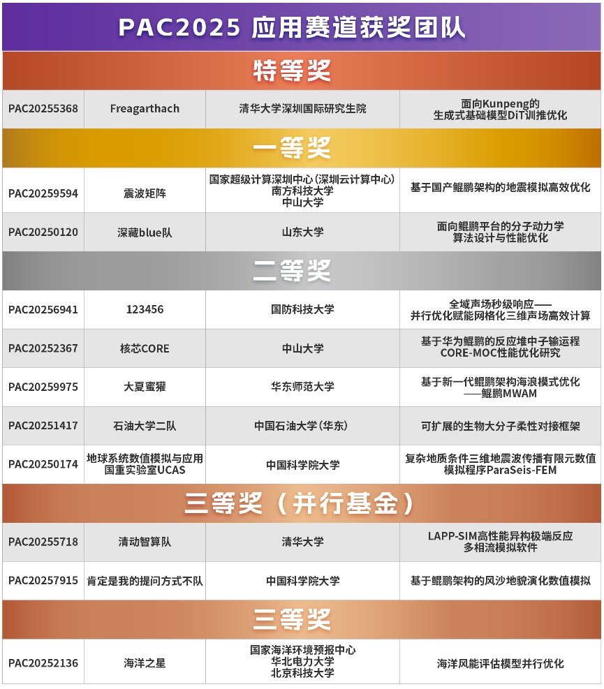 自2024年起,PAC大赛全面基于鲲鹏硬件平台,开创了“以赛促研、以赛促用、以赛育才”的自主算力生态新阶段。参赛作品基于鲲鹏处理器及KUPL并行编程框架进行代码优化与应用研发,切实推动了鲲鹏平台生态的融合与高性能计算算法的创新突破。