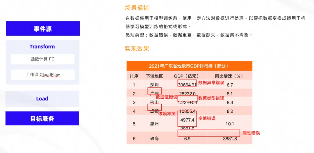 数据缺失是实际数据中的普遍现象,如何合理地处理缺失数据对模型性能有重要影响。EventBridge 可通过中间函数计算节点对数据进行处理和补全,提高数据的完整性和可用性。