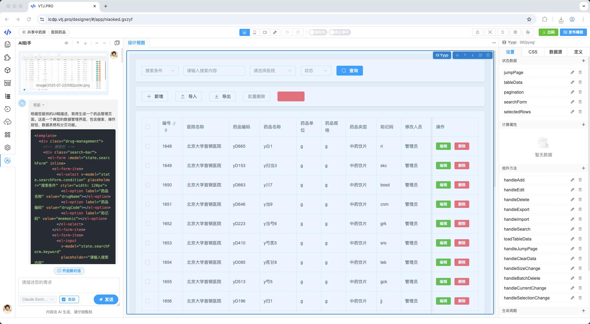 需要将原有Excel流程系统化,并与现有MES、ERP集成。VTJ.PRO通过自然语言理解业务需求,自动生成数据模型和接口集成方案,开发效率提升3倍以上。