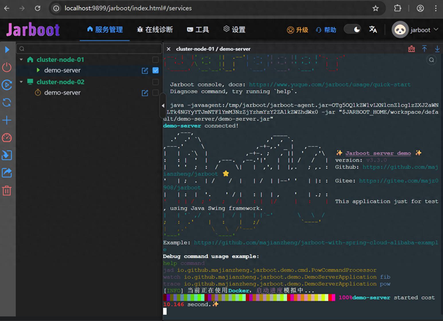 - 更多帮助见官方文档:www.yuque.com/jarboot/