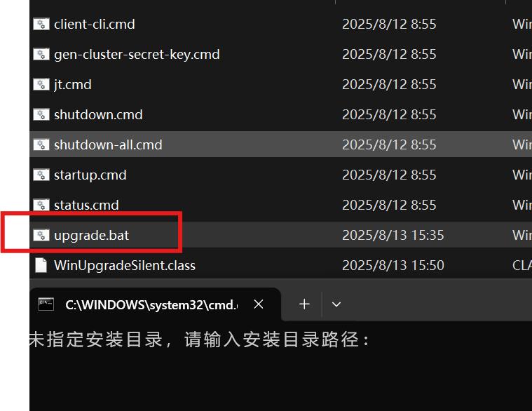 如下图可以通过执行upgrade.bat -d {安装路径},来升级或重装jarboot