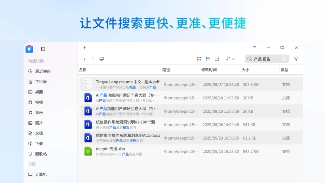 别担心,deepin 25 带着“全文检索”黑科技来了,哪怕只记得只言片语,也能瞬间定位目标,彻底终结文件查找难题。