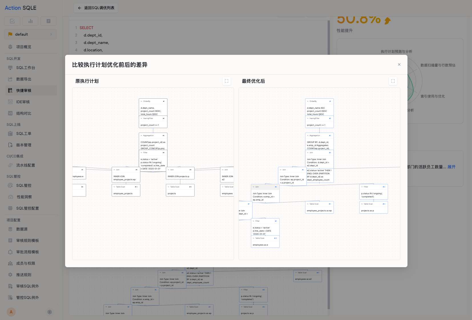 告别不确定性:我们不仅提供优化后的 SQL,还会用详尽的执行计划对比数据告诉你,它为什么更快,性能提升了多少。让你的每一次优化都有据可依,充满信心。