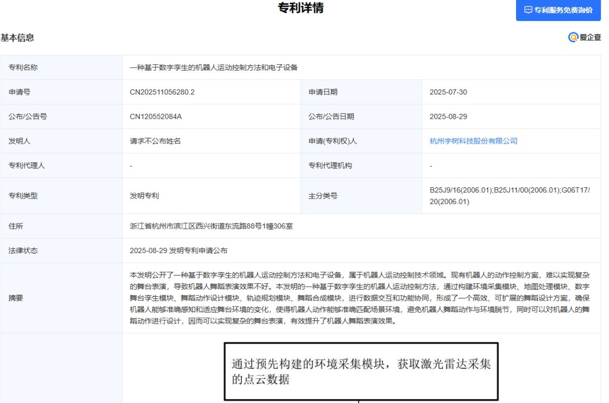 杭州宇树科技股份有限公司申请的专利 “一种基于数字孪生的机器人运动控制方法和电子设备” 于近日正式公布。这项新技术旨在通过数字孪生技术提升机器人在舞台表演中的灵活性和适应性,进而实现复杂而精彩的舞蹈表演。