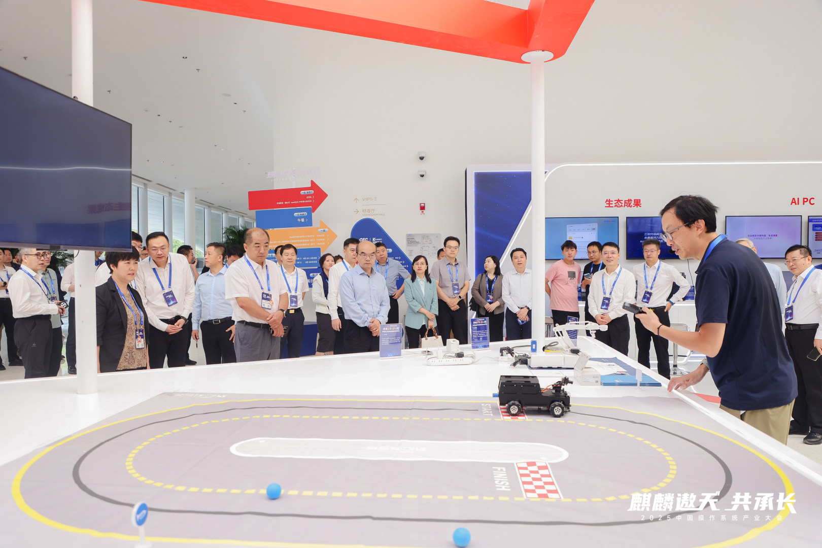 近日,OpenAtom openKylin(简称“openKylin”)2025年度开发者大会在北京盛大启幕,活动现场展示区展演重要进展 —— 广东松科智能科技有限公司(简称“松科智能”)研发的AI视觉小车与机械臂,已成功完成在 openKylin 操作系统的适配调试,两款设备均搭载飞腾派作为主控板,标志着openKylin嵌入式系统在工业场景的应用落地迈出关键一步。