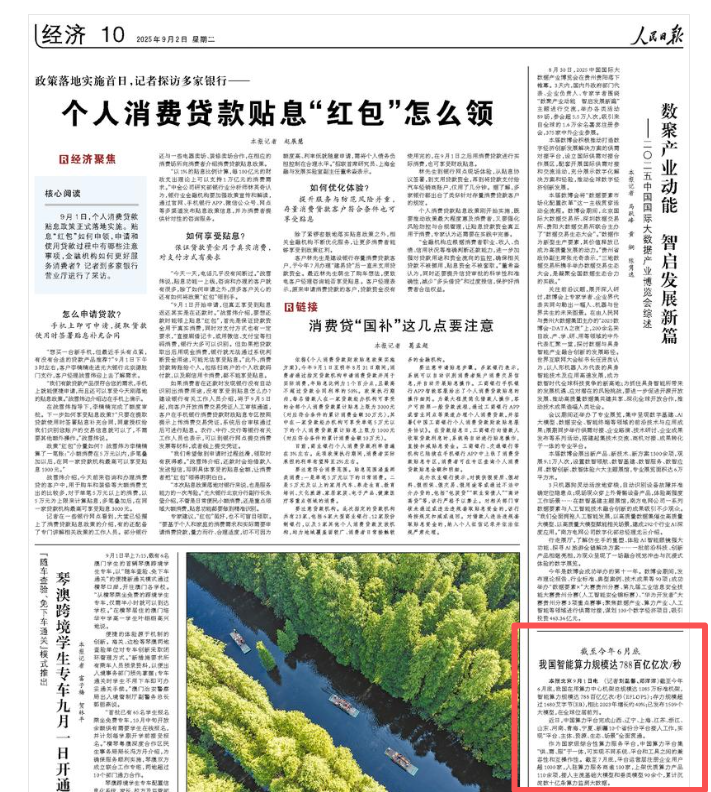 人民日报北京9月1日电 (记者刘温馨、郑洋洋)截至今年6月底,我国在用算力中心机架总规模达1085万标准机架,智能算力规模达788百亿亿次/秒(EFLOPS);存力规模超过1680艾字节(EB),相比2023年增长约40%;已发布1509个大模型,在全球位居前列。