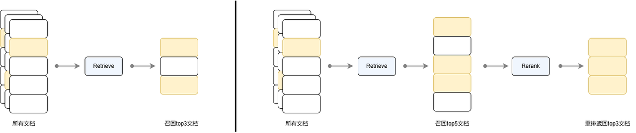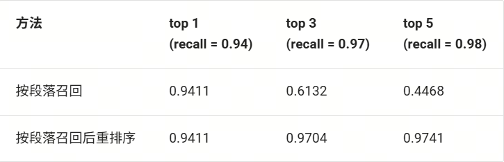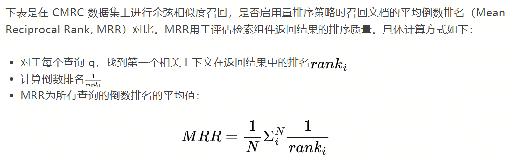 (4)召回重排策略:召回重排序策略是一种两阶段方法,第一阶段是使用检索器召回多个目标,最后通过一个精排模型实现对所有召回文段的排序和筛选,只保留前 k 个文段作为最终召回结果输入给生成组件。召回重排策略主要通过提升文档最终的排序情况,结合阈值滤除可以实现提升检索组件召回率的效果。