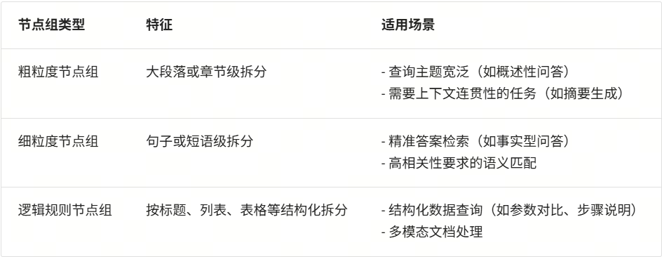 (2)检索策略优化——节点组切换:使用合适的节点组进行召回有助于同时提升召回率和上下文相关性指标。上下文相关性指标是在已召回文档计算得出的,因此可以预想到的一种情况是召回文档中的噪声过大。针对这种情况,使用合理的分块策略构建新的节点组,优化每个节点包含的内容围绕同一个主题有助于提升上下文相关性指标。