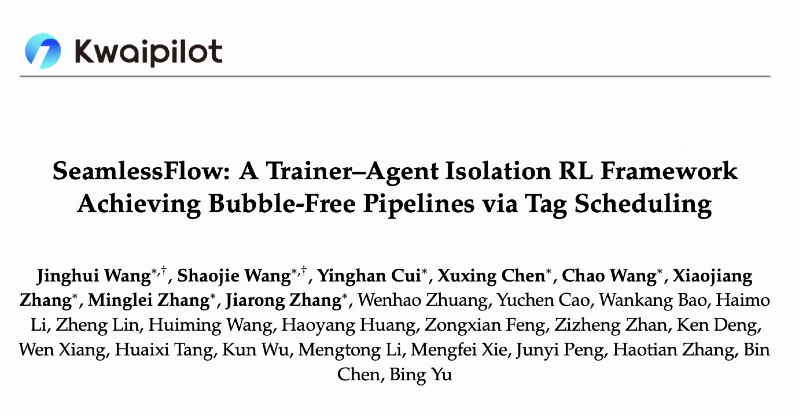 快手 Kwaipilot 团队近日发布了 SeamlessFlow 技术报告,SeamlessFlow 是该团队所使用的工业级规模强化学习(RL)训练框架。