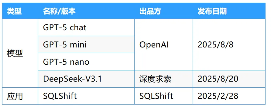 作为业界期待已久的新一代模型,GPT-5 系列在本月的评测中展现了其在 SQL 处理能力上的初步表现。