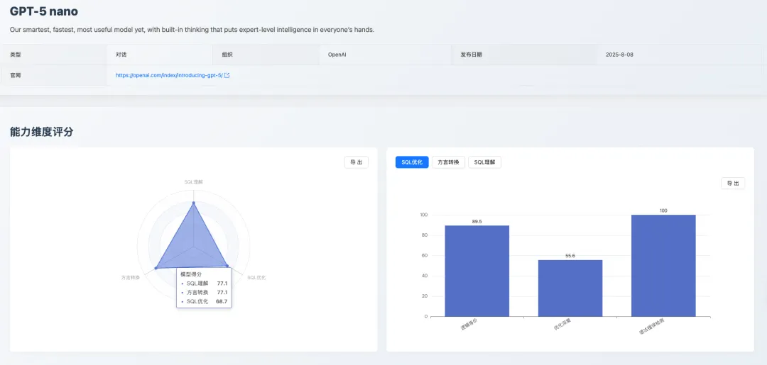 - 综合评价 :gpt-5-nano 是一个出色的"SQL 代码生成器",适合嵌入自动化工作流,处理标准化的"文本到 SQL"和简单的方言转换任务。