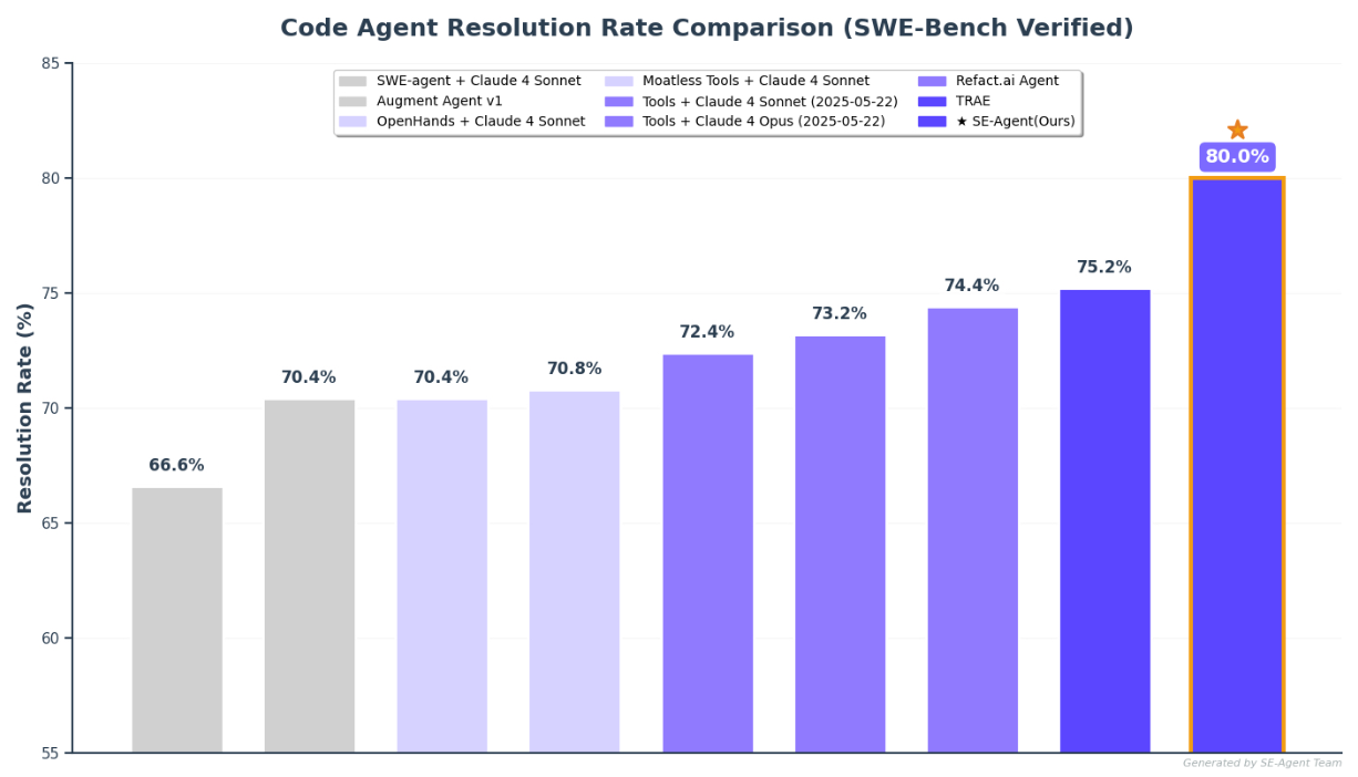SE-Agent是一个自进化框架,通过轨迹级进化机制实现推理路径之间的信息交换,突破了单一轨迹的认知局限。该方法扩展了搜索空间,突破了局部最优,并展现了从集体交互中涌现的能力,在SWE-bench Verified上实现了80% 的 Top1 性能,真正实现了基于 LLM 的智能体在复杂推理任务中的自主进化。