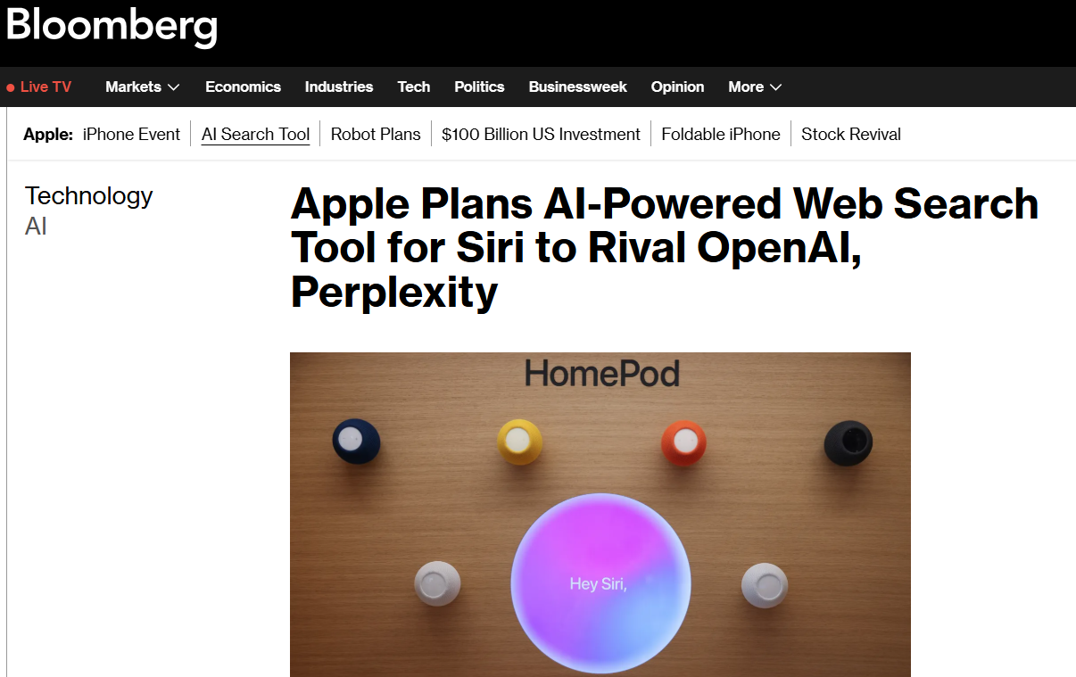 据悉,Siri 的全面 AI 升级原计划随 iOS18部分发布,但现已推迟至2026年。苹果目前仍在评估其内部大语言模型是否能达到 OpenAI、谷歌 Gemini 和新兴搜索公司 Perplexity 提供的 AI 问答引擎水准。