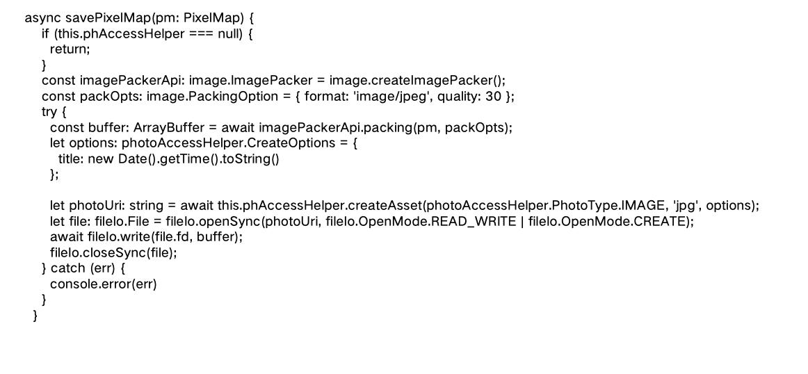 把上面切出来的PixelMap先转为ArrayBuffer,然后通过PhotoAccessHelper模块提供相册管理模块能力,包括创建相册以及访问、修改相册中的媒体数据信息等。把ArrayBuffer保存到图库里。