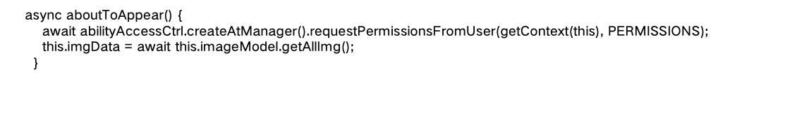 在页面生命周期aboutToAppear函数时,调用权限申请,并获取图库数据。