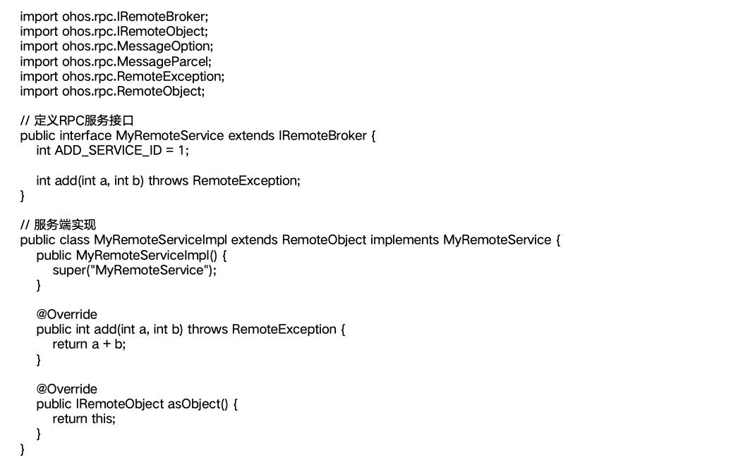 下面是一个简单的RPC跨设备连接代码示例(以Java语言为例,假设已经正确配置了RPC相关环境):