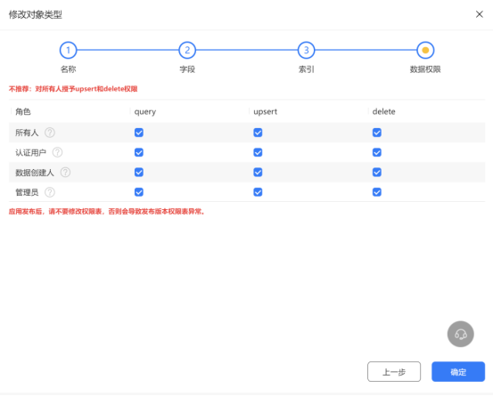 2.2 安全选项是限制上传权限,为了方便开发测试,可以临时把读写公开,如下面,方便学习此案例。