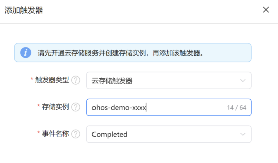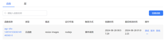 图片尺寸调整模板会在一键部署时自动生成模板的函数接口,模板部署成功后,您还需在“云函数”页面为对应的函数接口添加对应的云存储触发器,以实现在云存储的实例中存放图片后自动触发云函数。