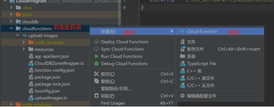 4.2 右击cloudfunctions目录,创建云函数,如下图