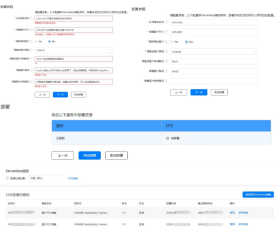 1.2 在左边菜单栏 云开发(Serverless) -> Serverless模板 -> 浏览更多Serverless模板 -> 图片尺寸调整 (点击部署) -> 选择 之前创建好的项目 -> 选择 数据处理位置 -> 配置参数 -> 开始部署 - 已部署模板