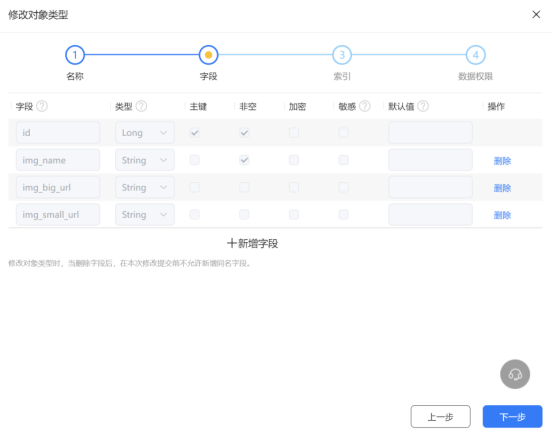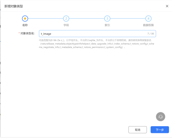 3.2 点击新增按钮,新增对象类型,也就是数据库表。