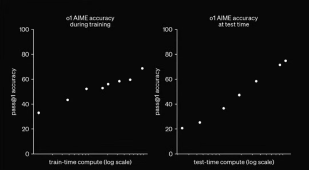 最令人兴奋的是,这种测试时计算可能展现出与预训练相似的扩展规律 ------ 换言之,就像增加训练计算量能带来模型能力的指数级提升一样,若在推理阶段分配更多计算资源(延长思考时间),模型性能理论上也会出现可预测的指数级增长。