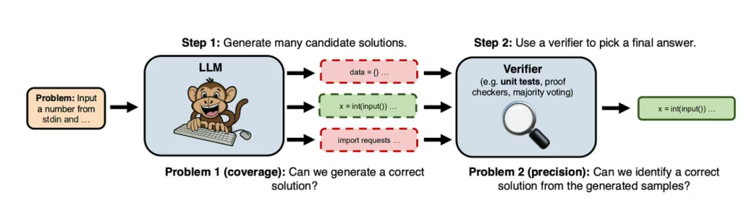 其核心思想是让语言模型在推理阶段生成多个可能的输出,然后通过采样、投票或其他评估/验证器方法来选出最佳答案。 这种方法无需改变模型的训练方式,但确实能作为一个有效的基线方案。