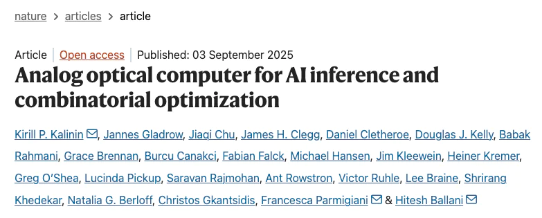 微软团队提出“模拟光学计算机”,显著提升 AI 推理速度