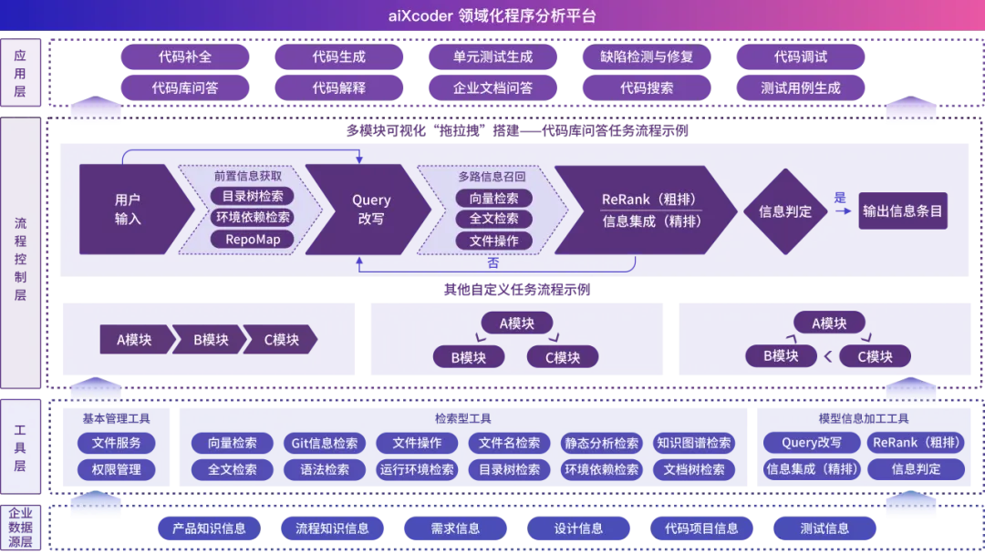 当前企业部署大模型时常面临私有数据异构分散、语义检索不准等挑战。该平台结合抽象语法树、控制流图等程序分析工具,宣称可提升上下文构建质量与召回精度,帮助模型生成更符合企业业务逻辑的代码与方案。