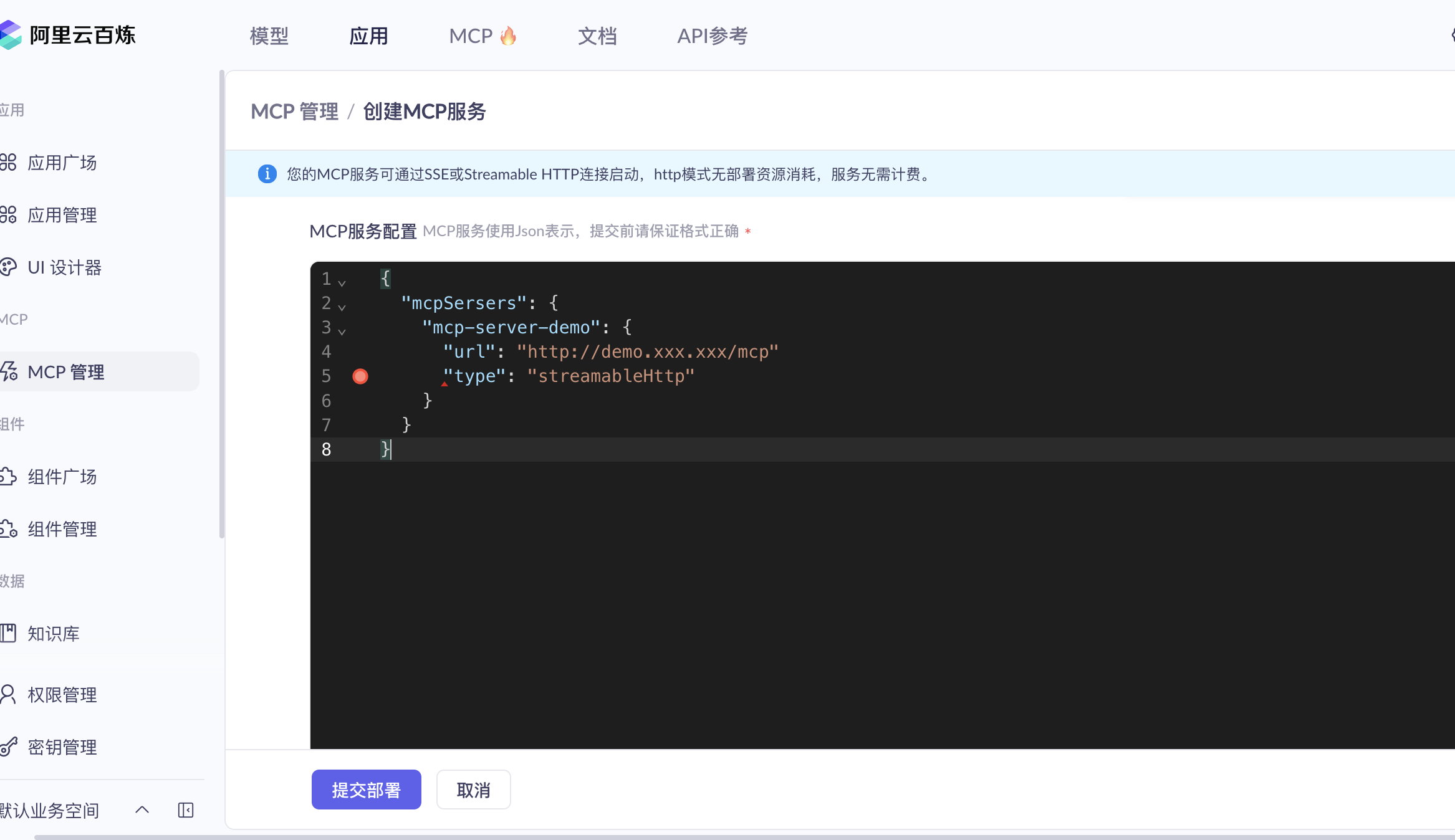 五、将部署好的 Streamable MCP 集成到百炼当中