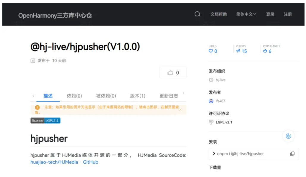 花椒直播开源其自主研发的直播推流器“HJpusher”,并上线OpenHarmony三方库中心仓。