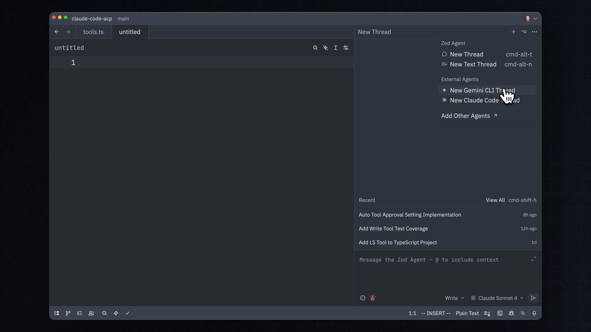 Zed 宣布集成 Claude Code 支持,目前处于公开测试阶段。