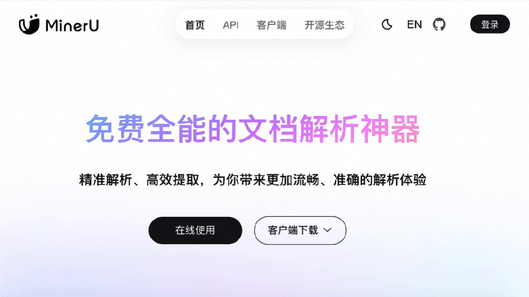 MinerU 是上海人工智能实验室(上海 AI 实验室)OpenDataLab 推出的智能文档解析引擎,因精准解析能力及广泛兼容性深受用户青睐,在 GitHub 上已累计获得超 4 万星标。