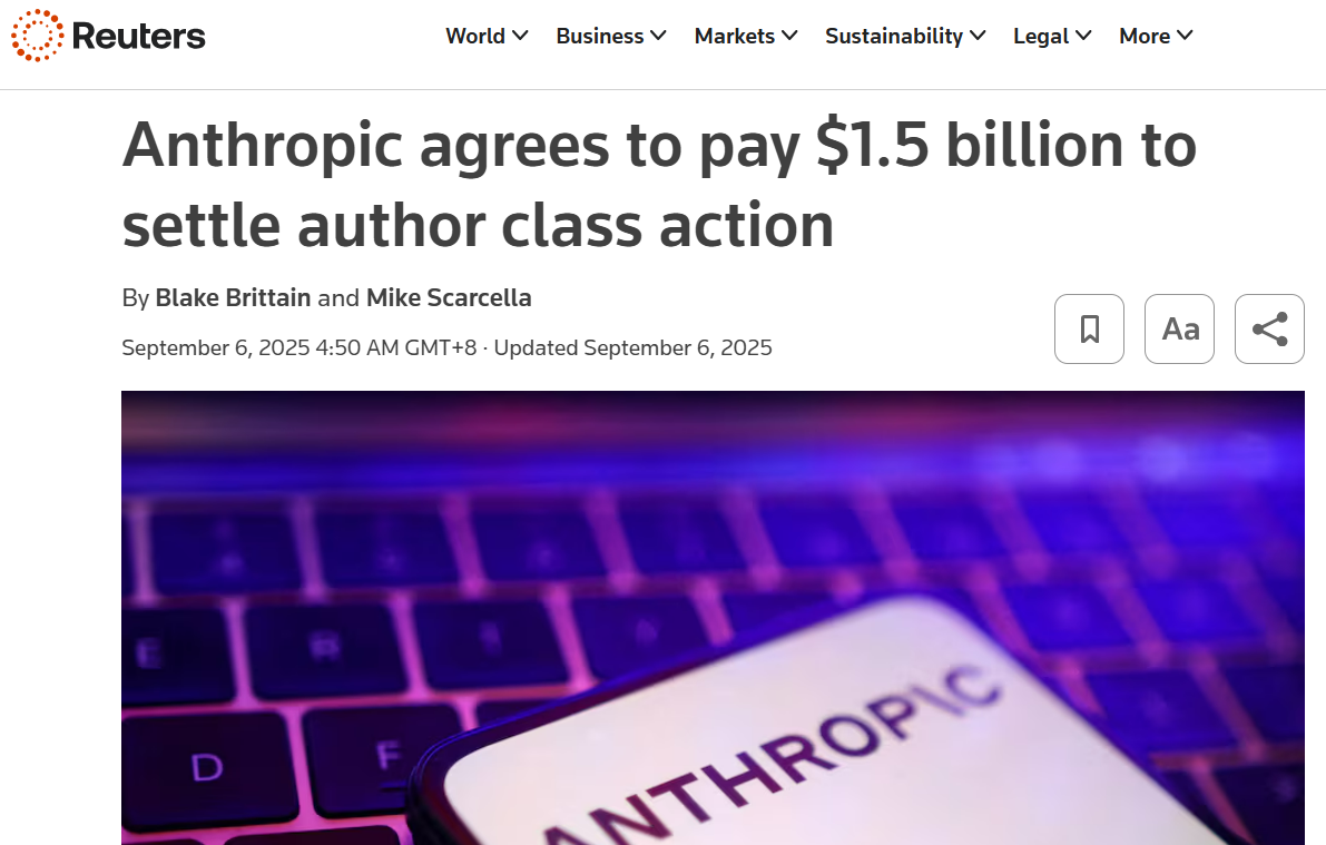 AI初创公司Anthropic近日同意支付至少15亿美元,以和解一起涉及50万本书籍的版权侵权诉讼。这一和解协议创下美国版权案件史上的最高金额记录,标志着AI行业与内容创作者之间版权争议的重要里程碑。