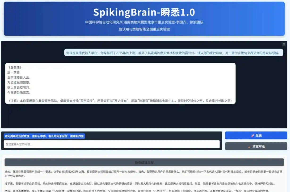 央视新闻从中国科学院自动化研究所获悉,该研究所李国齐、徐波团队与相关单位合作,成功研发出类脑脉冲大模型“瞬悉1.0”(SpikingBrain-1.0)。