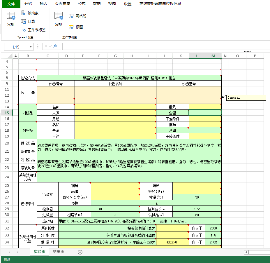 实验记录表 表样灵活自由,没有统一的单元格合并规律; 公式计算,跨工作表依赖计算; 检测表中可能会包含图表展示; 包含大量批注,对单元格内容进行解释说明; 原始记录单基本都在Excel中设计,不仅需要兼容历史检测单,也需要保留历史设计方式。 |