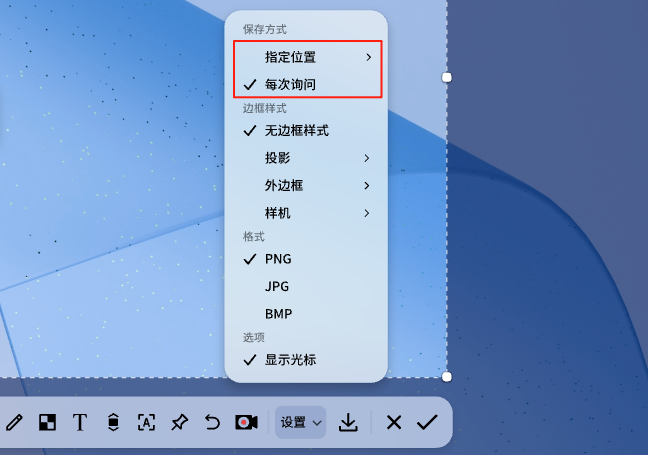 注:目前最新版截图录屏中,如果您希望避免每次OCR识别时弹窗询问保存位置,可以进入"设置"-"保存方式",选择"指定位置"来提升使用体验。