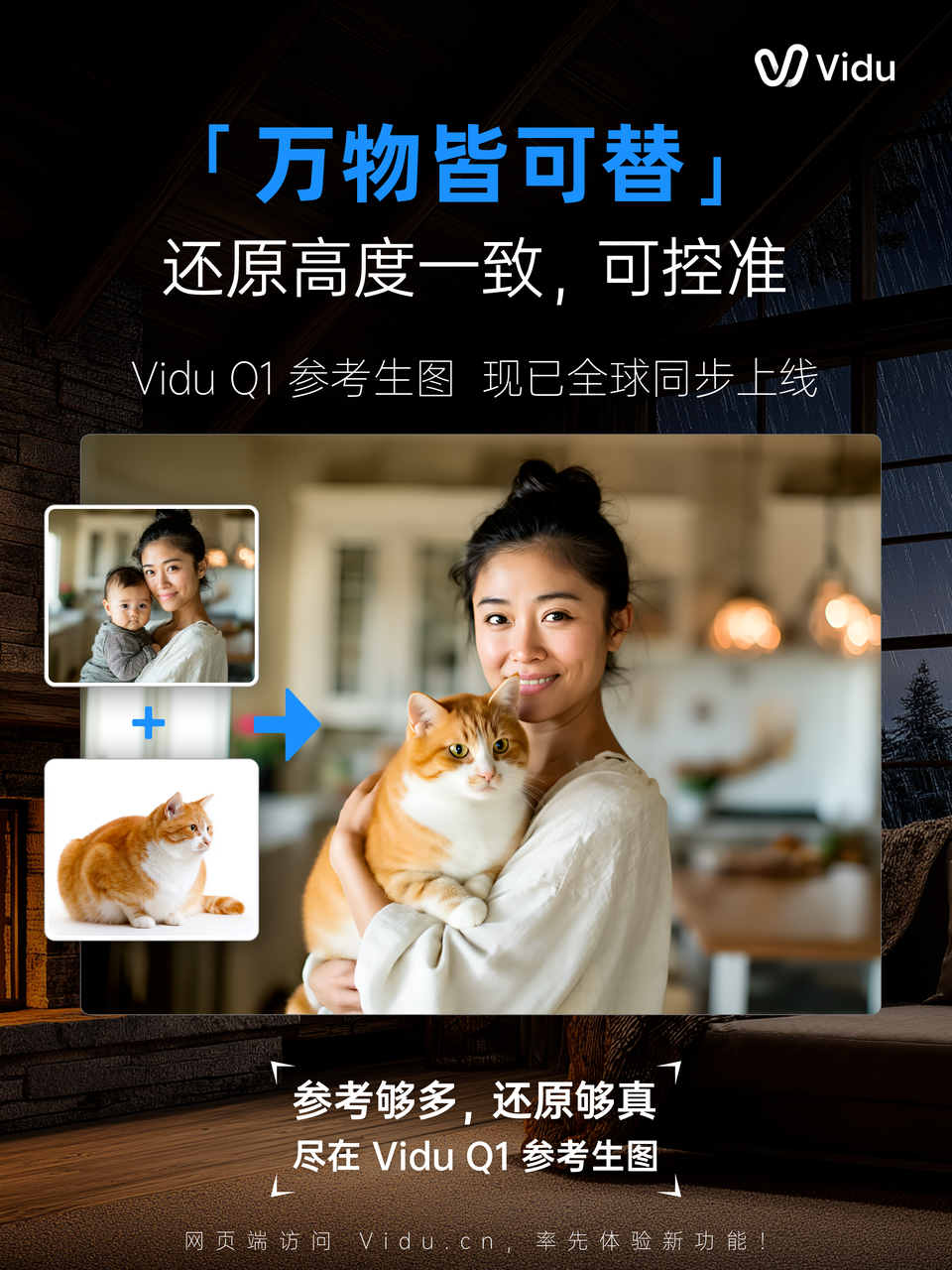 据介绍,Vidu Q1参考生图以“参考够多,还原够真”为核心,主要包括五大亮点: