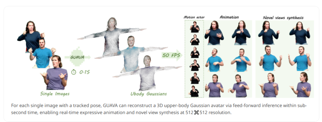 清华团队开源 GUAVA:0.1 秒由照片生成 3D 数字人