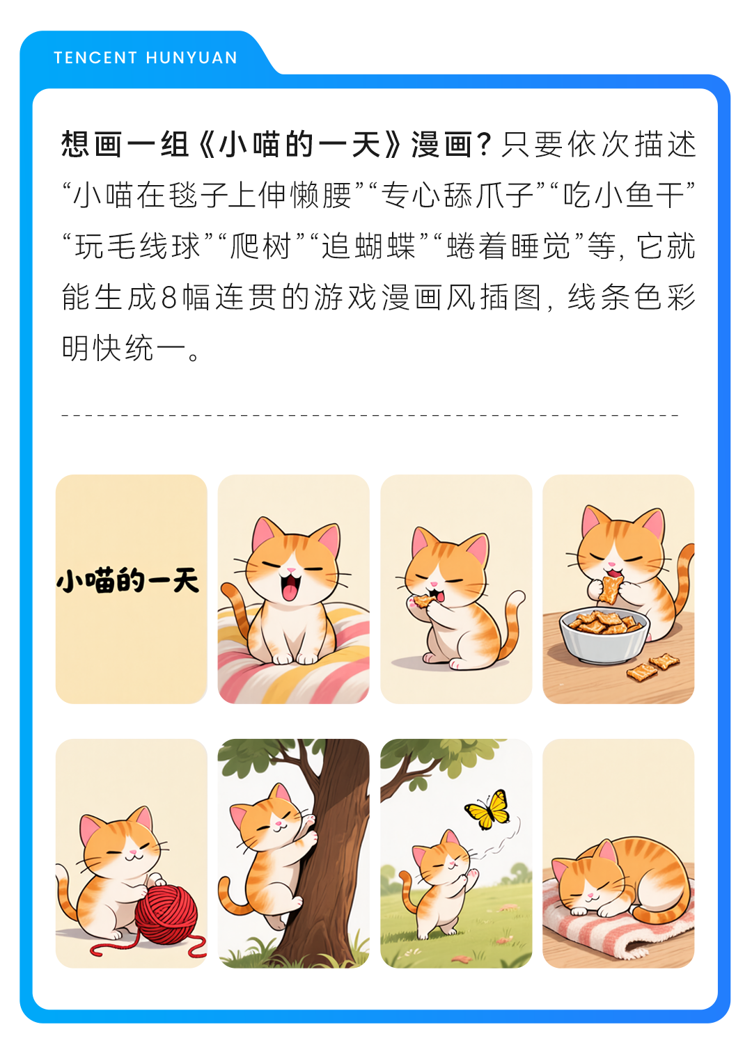 HunyuanImage-2.1在复杂语义理解、多主体分别控制、中英文字体生成、连环画与海报等场景下表现出色。它支持最长1000 tokens的提示词,能够精准还原人物的表情、动作以及图文混排的细节。同时,官方还开源了配套的PromptEnhancer文本改写模型,用于结构化地优化用户输入的指令。