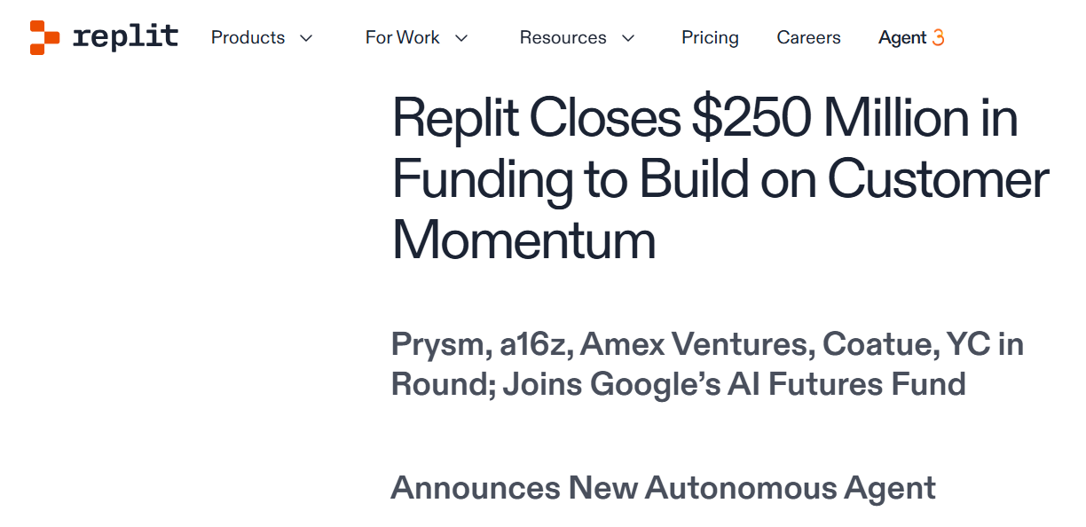 AI 编程公司 Replit 融资 2.5 亿美元,估值达 30 亿美元