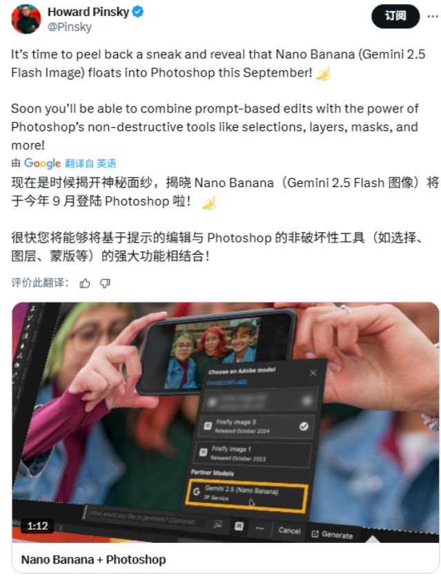 谷歌 Nano Banana 将于本月登陆 Photoshop