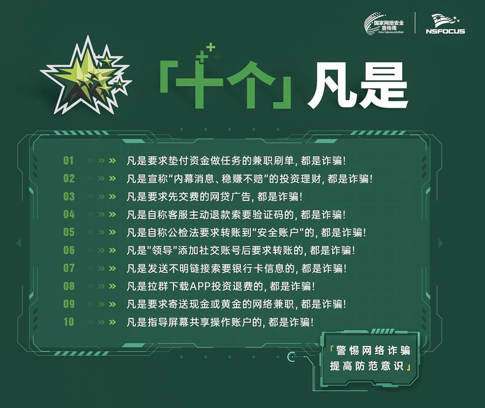 同时,围绕网络安全意识教育开展宣传,如“2025网安周|牢记‘十个凡是’,守好你的‘钱袋子’”,帮助提升公众的安全防护意识。